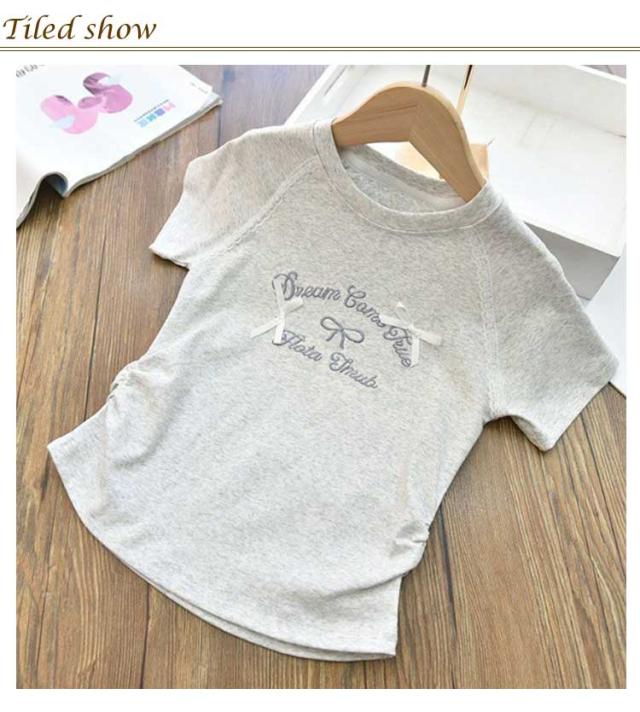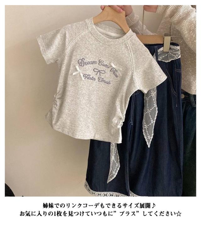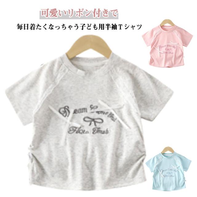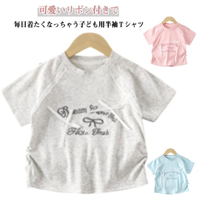 コットン 夏 Tシャツ 綿 半袖tシャツ プリント 可愛い ジュニア 女の子 レース リボン付き キッズ 女の子 おしゃれ 丸首 ベビー服 トップス カットソー 夏服 子ども服 子供用 韓国子供服 女児 グレー ピンク ブルー
