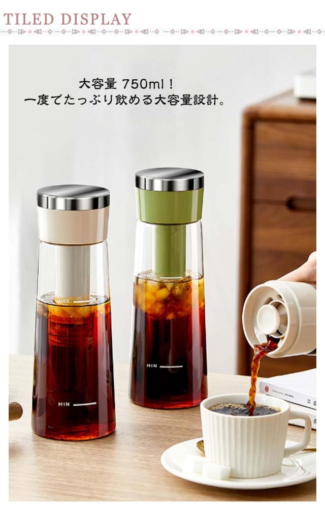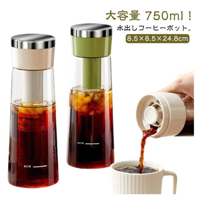 水だし 麦茶ポット 大容量 ポット 水出しコーヒーポット 水出し珈琲 アイスコーヒーお茶用 750ml 冷水筒 アイスコーヒー 水筒 珈琲ポット コールドブリューポット 水出しコーヒーポット お茶 ドリンクピッチャー 冷蔵庫ポット フルーツティーポット ガラス製 ステンレス