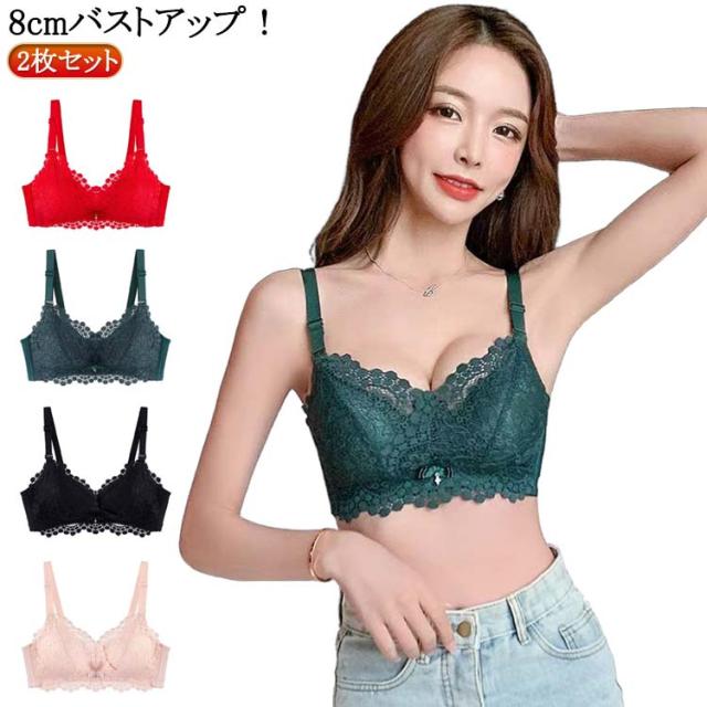 2枚セット かわいい セクシー 肩紐幅広 8cmバストアップ ブラジャー レディース ノンワイヤー ブラ レース バストアップ 小さい胸 アンダーウエア 下着 インナー 胸を大きく見せ