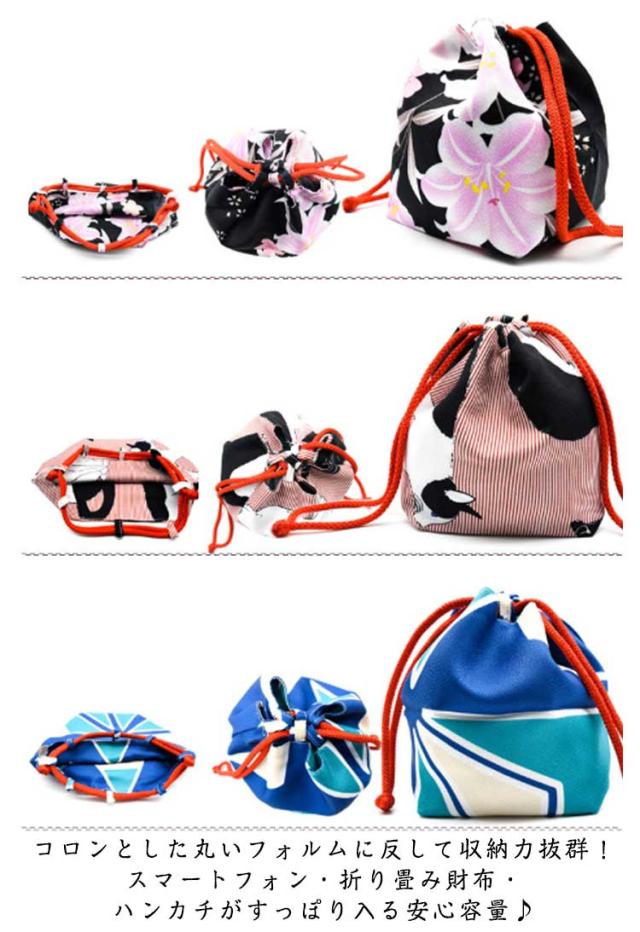| 卒業式のはかま姿や成人式の振袖にもおすすめ!ステキな配色のバイカラー巾着バッグです。 コロンとした丸いフォルムに反して収納力抜群!スマートフォン・折り畳み財布・ハンカチがすっぽり入る安心容量♪ 大人も子供も使える、手提げ巾着です。袴・浴衣・普段着物など季節を問わず幅広くお使いいただけます。 お子様にも持ちやすく、七五三、お宮参り、夏祭りなどで活躍します。 使わないときはぺたんと折り畳めるので、便利に収納が可能です。 | |