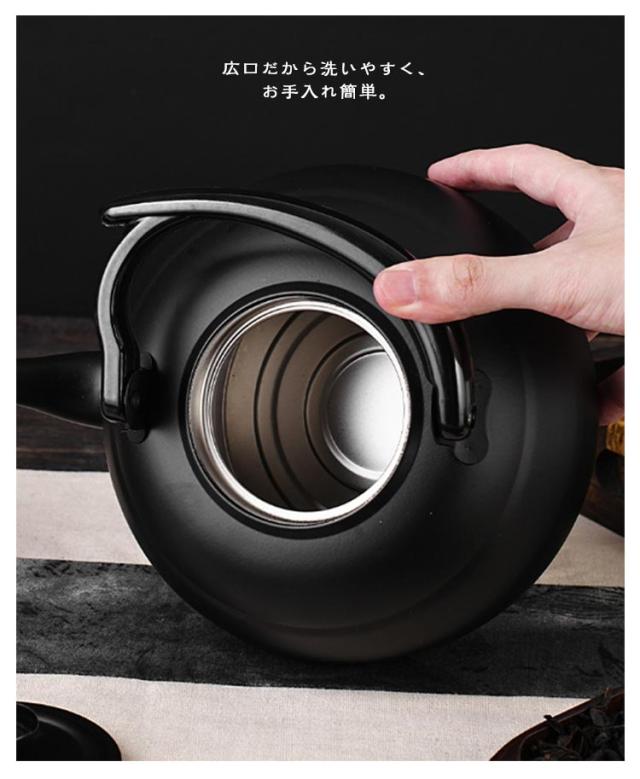 茶器 ステンレス やかん 茶こし付き 大容量 1.5L おしゃれ 広口 ヤカン やかん 2.0L ガス IH対応 時短 やかん 直火 湯沸かし お湯 沸かす 麦茶 1.2L 省エネ シンプル 使いやすい 誕生日 プレゼント 黒