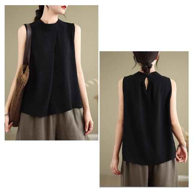 | タックデザインやノースリーブですっきりとした印象のブラウス ふわっとしたシルエットでおなか周りも安心。動くたびに揺れる裾が可愛い! さらりとしたタッチで肌離れが良く、軽やかに着用いただける素材感。 襟元は程良い開き具合のハイネックで、アクセサリーも合わせやすいです。 ボトムを選ばずスカートやパンツにも合わせられるので オンもオフスタイルにもオススメ。 | |