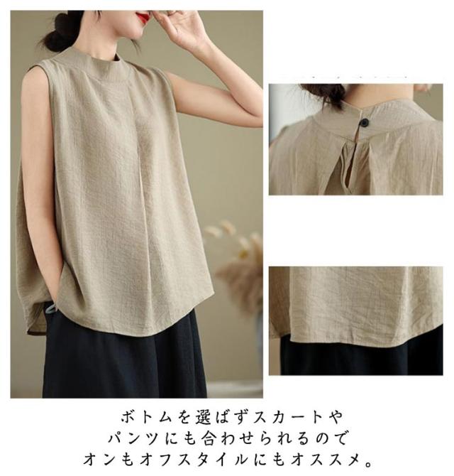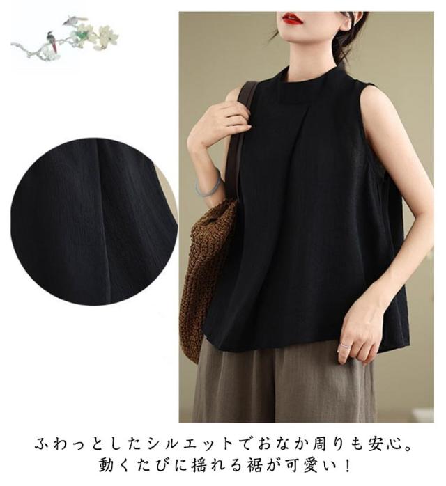 ブラウス ノースリーブ ハイネック ノースリーブブラウス レディース トップス シャツ フリルブラウス 涼しい ゆったり タンクトップ ギャザーブラウス ギャザー ブラウス オーバーサイズ ベージュ ブラック