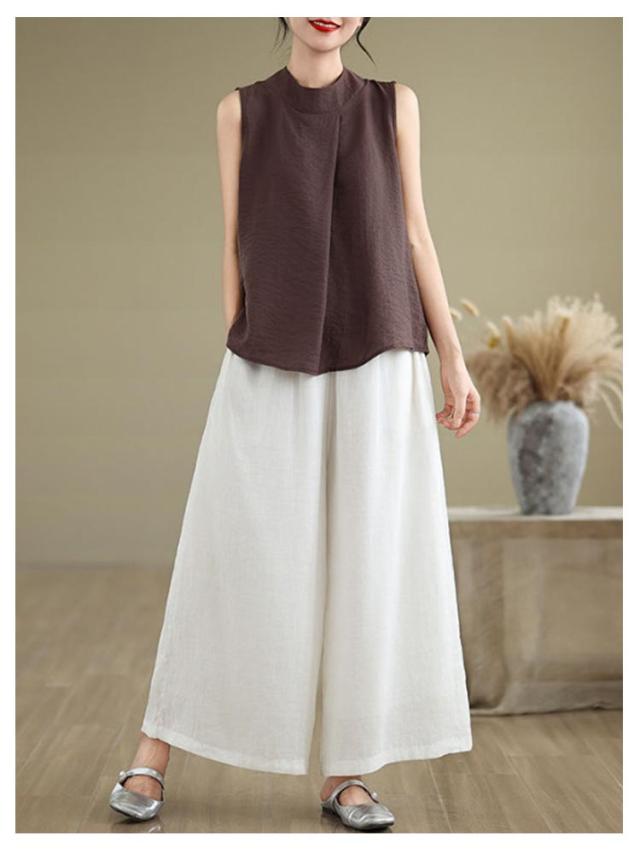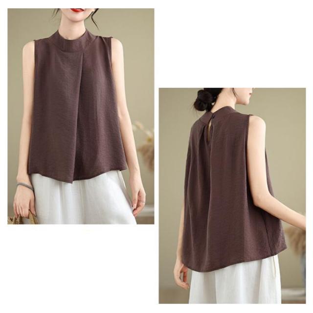 | タックデザインやノースリーブですっきりとした印象のブラウス ふわっとしたシルエットでおなか周りも安心。動くたびに揺れる裾が可愛い! さらりとしたタッチで肌離れが良く、軽やかに着用いただける素材感。 襟元は程良い開き具合のハイネックで、アクセサリーも合わせやすいです。 ボトムを選ばずスカートやパンツにも合わせられるので オンもオフスタイルにもオススメ。 | |