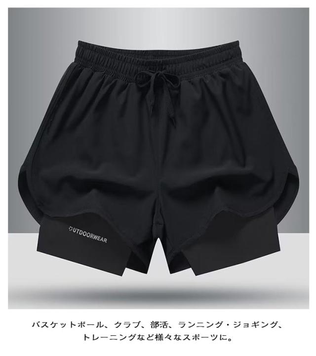 インナータイツ付き 2枚セット! メンズ 夏 ショートパンツ 春 軽量 速乾 短パン インナー付き ストレッチ ハーフパンツ 2枚セット! スポーツウェア 春 夏 ジムウェア ランニングウェア トレーニングウェア ジョギング 部活 筋トレ