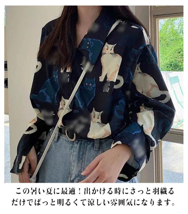 トップス 開襟 アロハシャツ レディース 夏 ヒップホップ リゾート ボタニカル ダンス 衣装 シャツ トップス ハワイシャツ アロハシャツ アロハ コスチューム ハワイシャツ 日焼け止め服 薄手 ねこ柄 ビーチ ゆったり 開襟 浜辺 個性的 服 原宿系