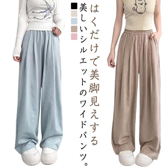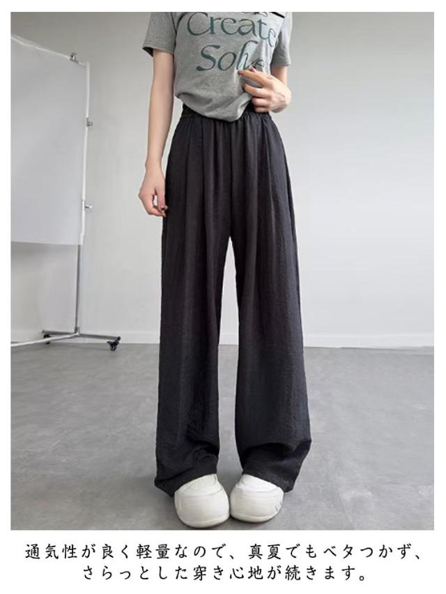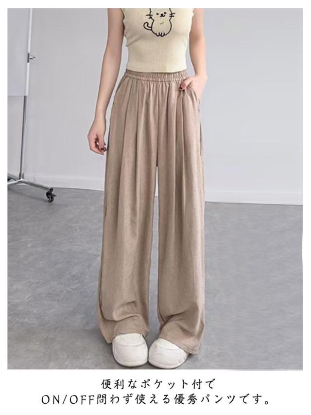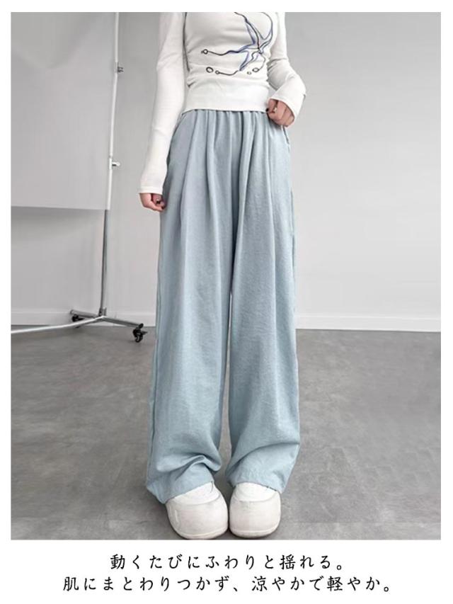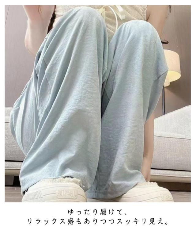 | はくだけで美脚見えする美しいシルエットのワイドパンツ。 動くたびにふわりと揺れる。肌にまとわりつかず、涼やかで軽やか。 ゆったり履けて、リラックス感もありつつスッキリ見え。 ウエスト後ろゴム仕様&ストレッチ素材で楽なはき心地。 通気性が良く軽量なので、真夏でもベタつかず、さらっとした穿き心地が続きます。 便利なポケット付でON/OFF問わず使える優秀パンツです。 | |