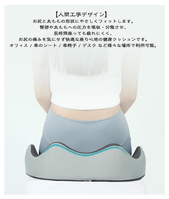 | もう、腰・お尻が痛くならない! 3D健康クッション・低反発 優れた通気性 椅子/床/車用 いつでも自然な身姿に 坐ると腰・背部は自然とまっすぐに、 いつも正しい座り方に ・カバーが洗えて清潔に ・全体をしっかり支える ・お尻が蒸れないように ・大きく包み込む感じ 快適な座り心地を実現する 3Dフィットクッション5つのポイント ・独自の3Dフォルム ・高密度50Dウレタン ・中空構造 ・こだわりのカバー ・滑り止め付き しっかりとした座り心地を実現! 【厳選高密度低反発素材】 高い耐久性・快適反発力 厳選したウレタンフォームを採用数ヵ月でへたってしまう安い素材ではなく、 何年もご使用頂くことを前提に開発しております。 【圧倒的なフィット感を実現】 高密度な高級低反発ウレタンフォームで、あなたのお尻を守ります。 座った際、お尻の両サイドの傾斜に沿ったフォルムが体圧をしっかりと分散させます。 太腿の付け根部分も滑らかに凹ますことでフィット感が高まります。 【姿勢を美しくするフォルム】 3D形状の流線型のフォルムにより、骨盤のゆがみを改善する効果が期待できます。座るだけで自然に前傾する姿勢を保ち、背筋が自然と伸びることで無理なく正しい姿勢へ導きます。 【人間工学デザイン】 お尻と太ももの形状にやさしくフィットします。臀部や太ももへの圧力を吸収・分散させ、長時間座っても疲れにくく、お尻の痛みを気にせず快適な座り心地の健康クッションです。オフィス / 車のシート / 車椅子 / デスク など様々な場所で利用可能。 【‘座る’を科学した中空構造デザイン】 ホール形状の中空デザイン クッションの真ん中部分を中空にすることで、蒸れの予防や痔などのお尻の問題にも役立ちます。 | |