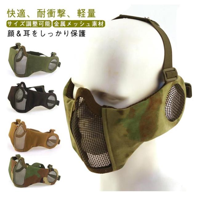 サバゲー フェイスガード プロテクター メッシュ マスク サバゲー フェイスマスク サイズ調整可能 耳カバー 防護マスク 耳保護付き 装備 スポーツマスク サバゲー ハーフ 曇らないフェイスガード サバゲー装備