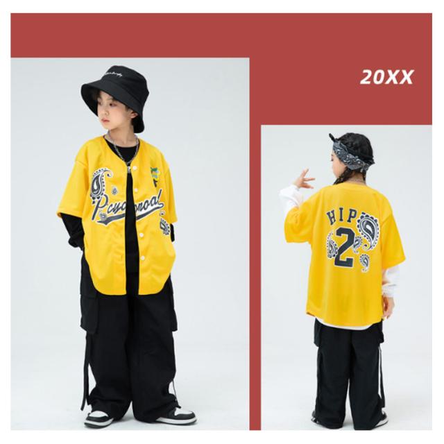 黄色 発表会 コットン キッズ ダンス衣装 男の子 女の子 ロングtシャツ トップス 夏 カジュアルシャツ 半袖 黄色 ゆったり ヒップホップ ジャズダンス 韓国k-pop 綿 演出服 練習着 団体服 応援団