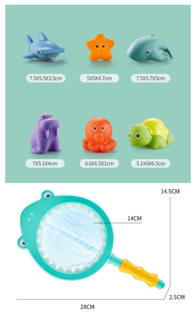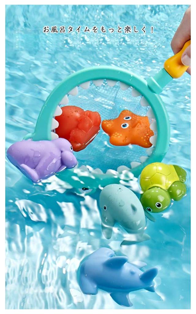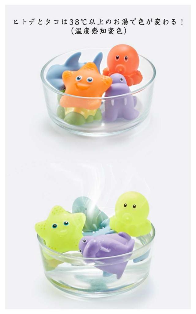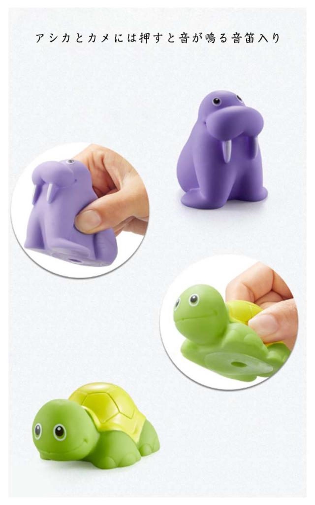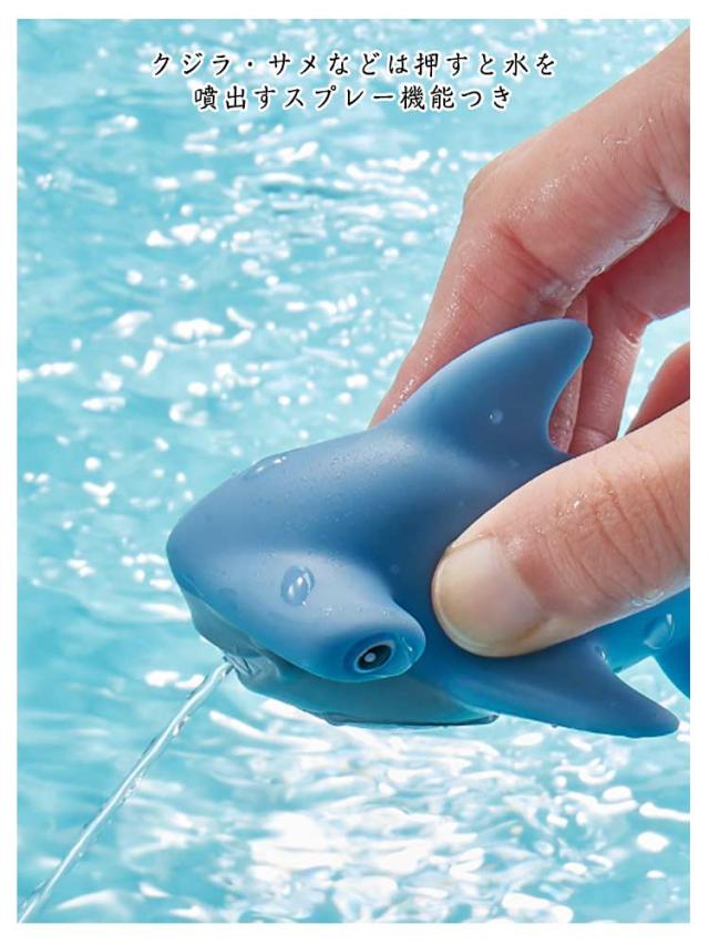 | お風呂おもちゃセット お風呂タイムをもっと楽しく! シャーク型のすくい網で魚をすくう感覚が楽しめる アシカとカメには押すと音が鳴る音笛入り ヒトデとタコは38℃以上のお湯で色が変わる!(温度感知変色) クジラ・サメなどは押すと水を噴出すスプレー機能つき 柔らかい素材でできており、小さなお子様でも安全に遊べます。 | |