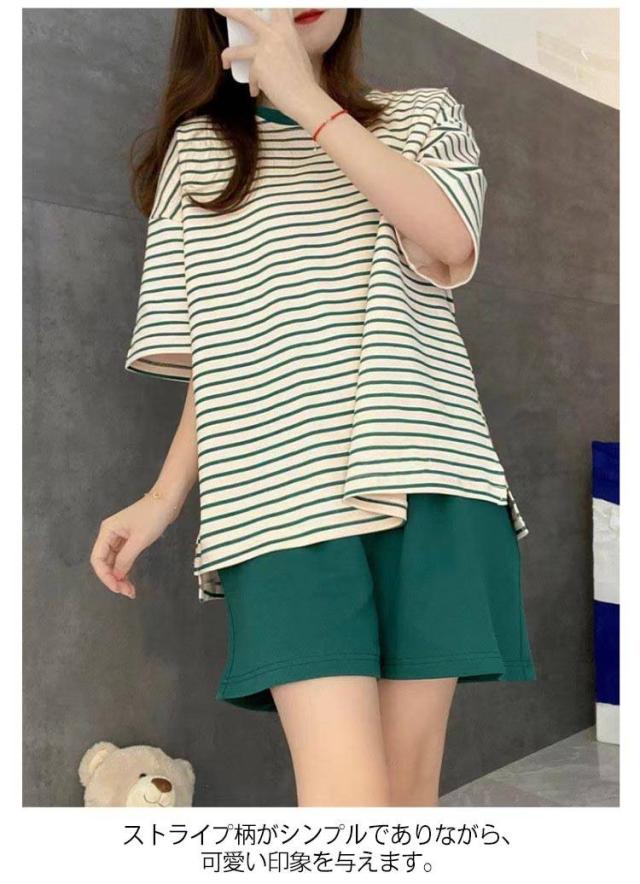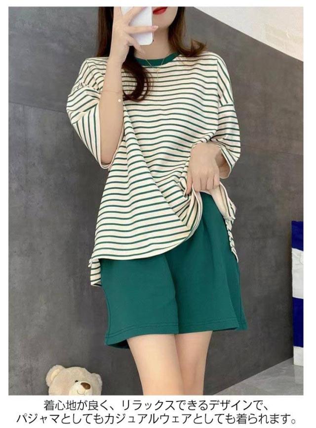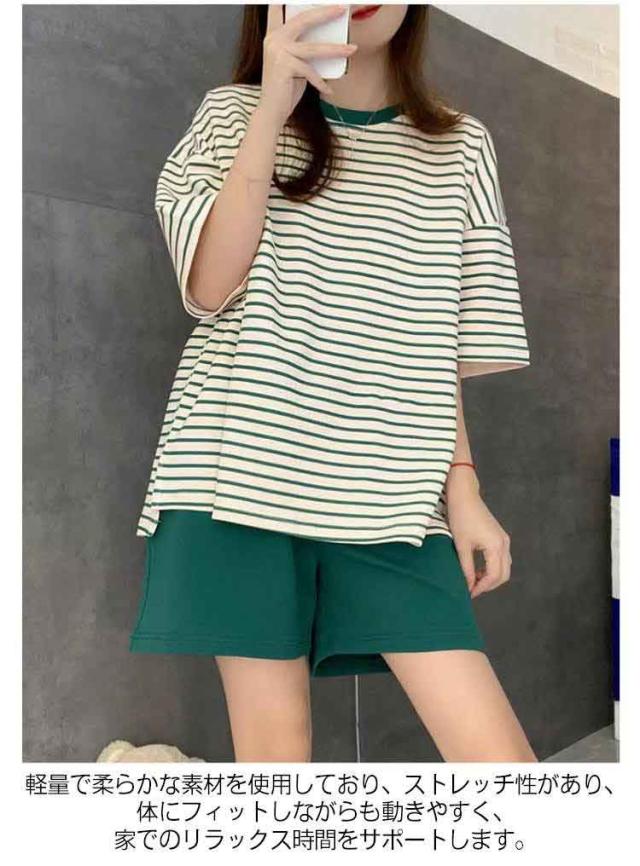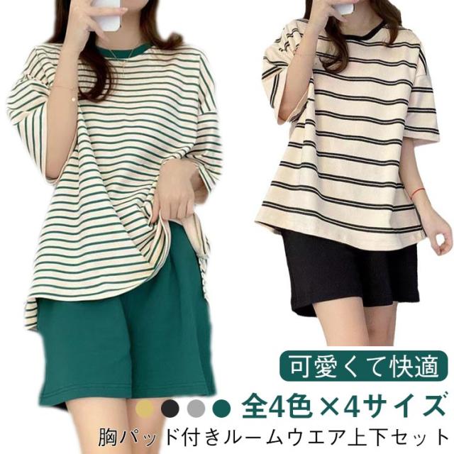 レディース ルームウェア ラウンドネック パジャマ Tシャツ 短パン 上下セット 半袖Tシャツ 夏用 カップ付き 半袖 ルームウェア カップ付き