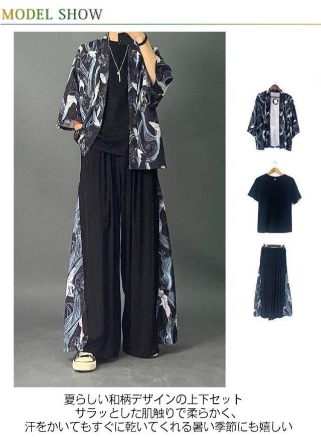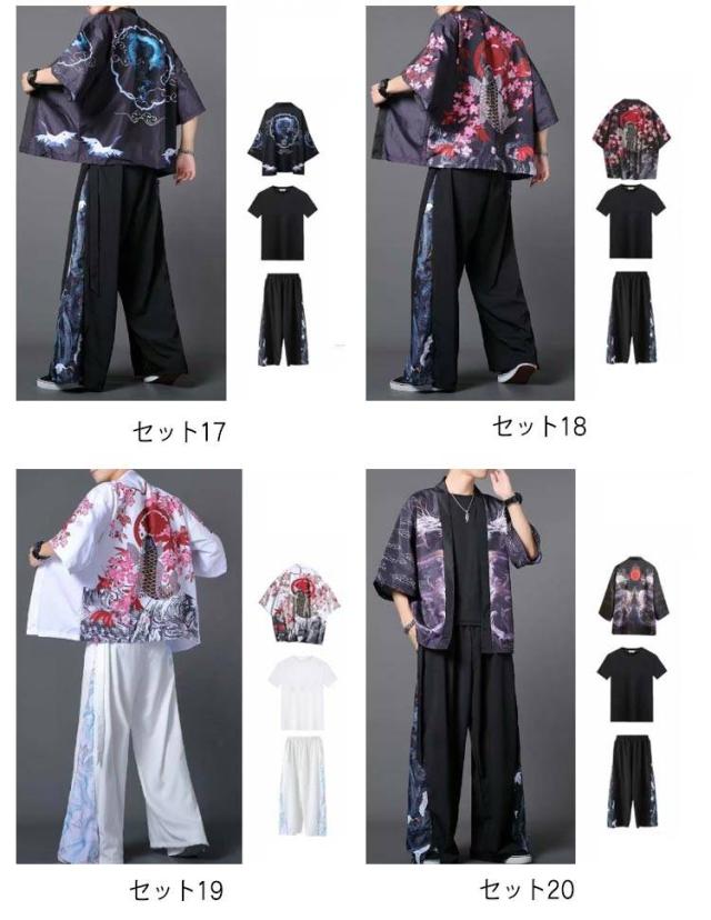 | 【中国風の美しさを感じる!】【夏用3点セット】【全20種類】 夏らしい和柄デザインの上下セット サラッとした肌触りで柔らかく、汗をかいてもすぐに乾いてくれる暑い季節にも嬉しい♪ ゆったりとしたワイドシルエットのデザインで、リラックス感のある着心地。 3点セットにより、簡単に全体のコーディネートが決まります。 カジュアルな外出や、伝統的なイベント、コスプレにも適しています。 | |