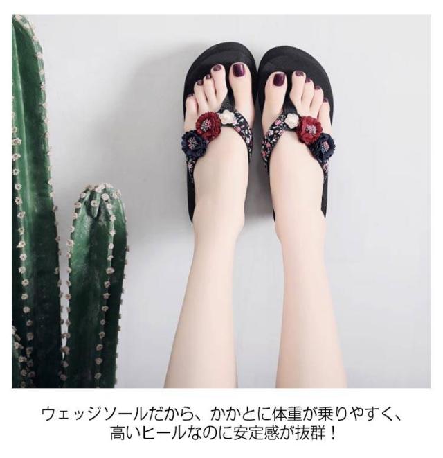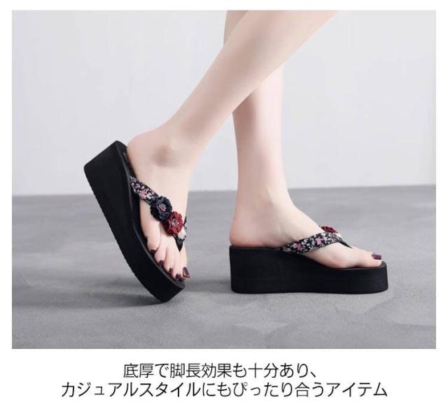 美脚サンダル ミュールサンダル ミュール ウエッジサンダル 歩きやすい ビーチサンダル ビーチサンダル 靴 厚底サンダル レディース トングサンダル ビーサン フラワー コンフォート 厚底 軽量 リゾート 旅行 浴衣 シューズ