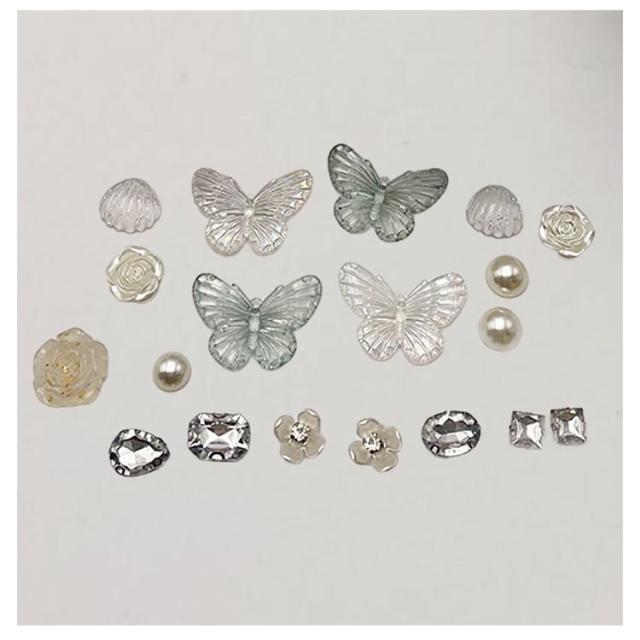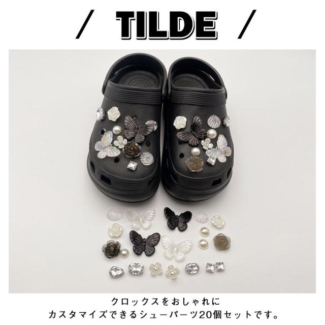 アクセサリー 【20個セット】 パール調 クロックス シューパーツ シューアクセサリー 女性 ガールズ レディース 蝶 お花 フラワー 薔薇 クロックス用シューパーツ おしゃれ かわいい 黒 ブラック グリーン