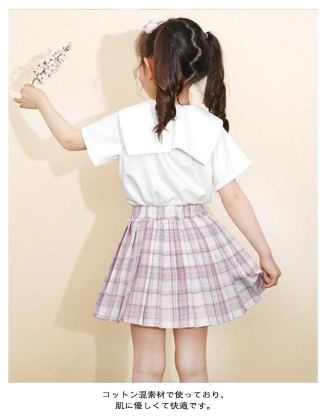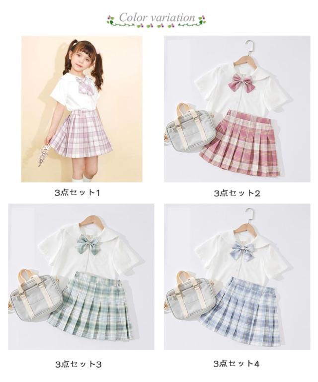 制服 トップス 子供 女の子 JK制服 上下セット 子供 蝶結び リボン付き プリーツスカート 子供服 学生制服 スクール スカート フォーマルスーツ 可愛い チェック柄 卒業 卒園 半袖 コスプレ 中学生 小学生