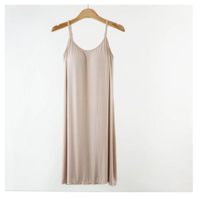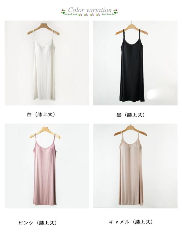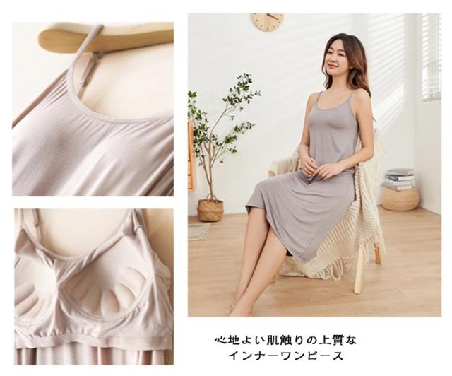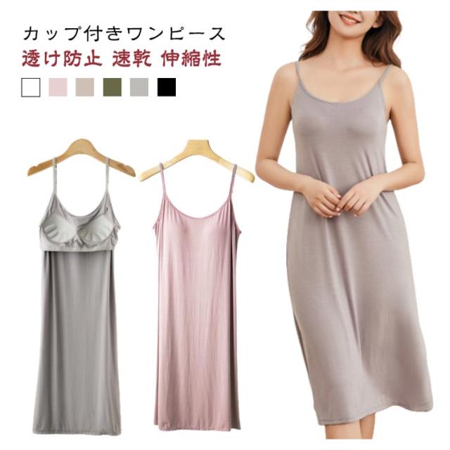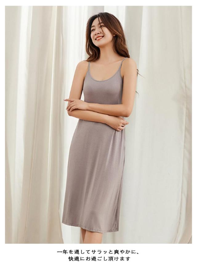 レディース カップ付きワンピース インナードレス ひざ丈 ブラキャミ インナー カップ付き ブラ付き ワンピース ペチコート モダール ロング丈 インナーキャミソール インナーウエア キャミソール キャミワンピ スリップ