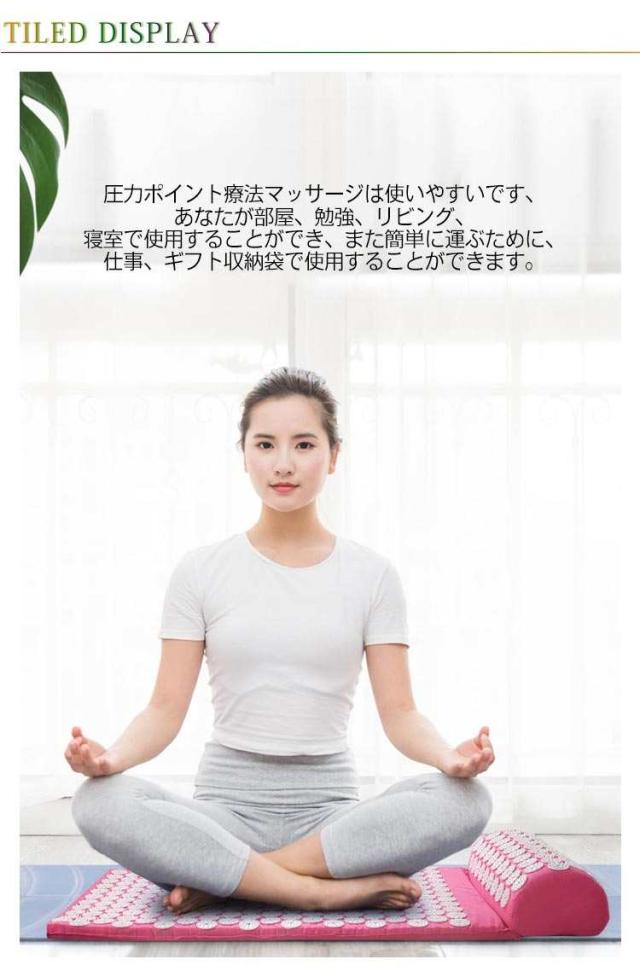 | 【マッサージマット】【ツボ押しでリラックス】【マット+枕+収納バッグの3点セット】 指圧マット/枕/収納バッグ 3点セット ストレス、痛み、筋肉緊張を緩和し、首の痛みを緩和し、血液循環を増加させることができます。 指圧マッサージマット自体を癒しの身体の生来の道をトリガしながら活性化と若返りながら、ツボの数千人は、マットと枕緊張を緩和し、深いリラクゼーションの状態を誘導するための非常に有効なツールとなっています。 背中痛、緊張、硬直、不眠、疲労などの多種の情況の緩和に適用します。 特別なTPE原料、肌のようなタッチ、無毒な副作用、より安全で環境にやさしい。 圧力ポイント療法マッサージは使いやすいです、あなたが部屋、勉強、リビング、寝室で使用することができ、また簡単に運ぶために、仕事、ギフト収納袋で使用することができます。 | |