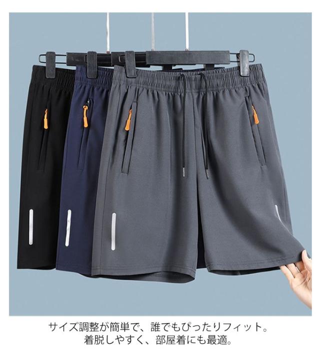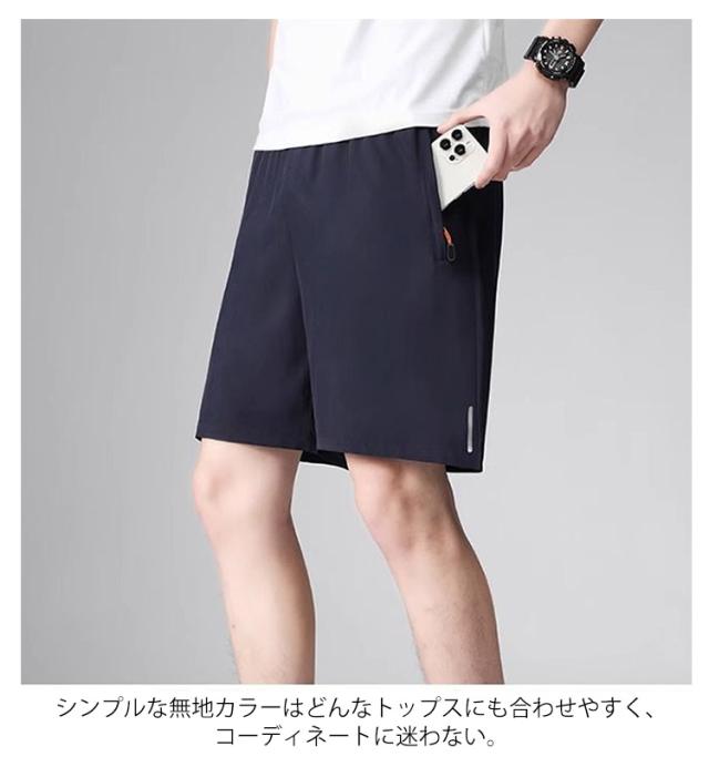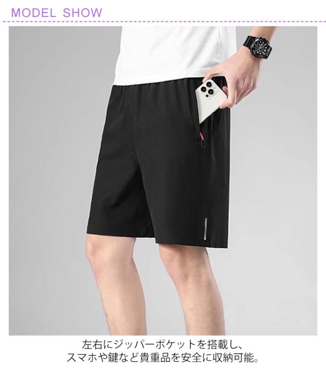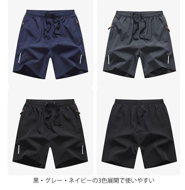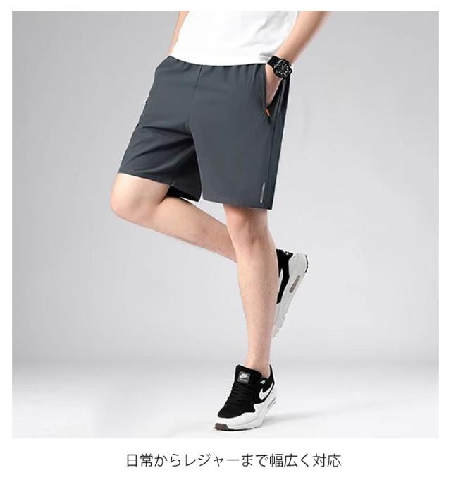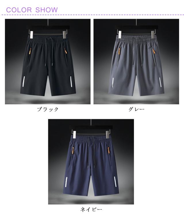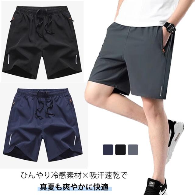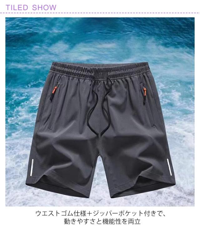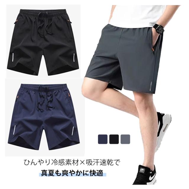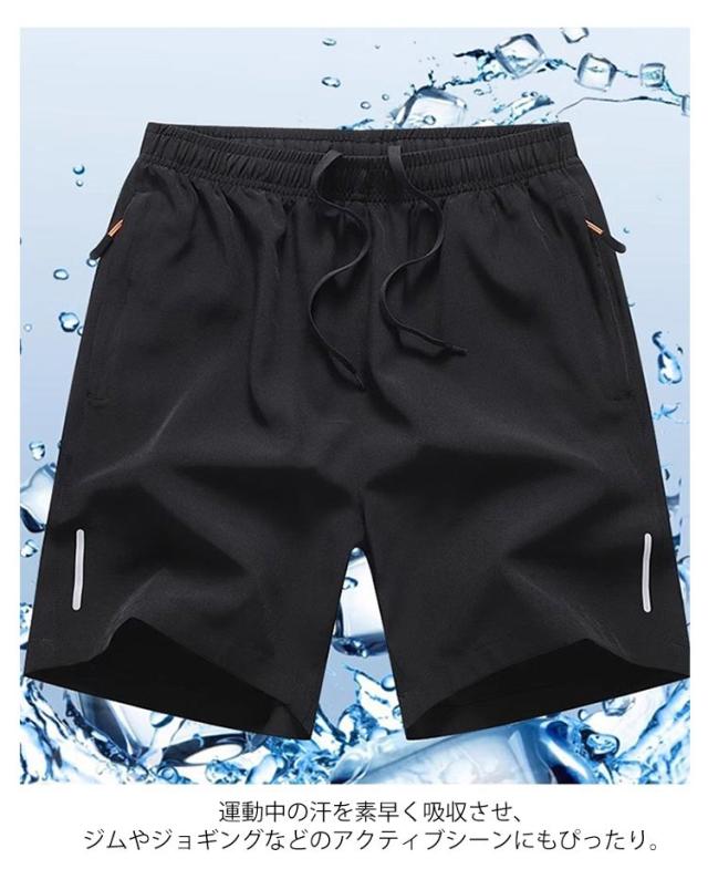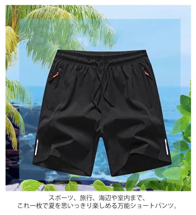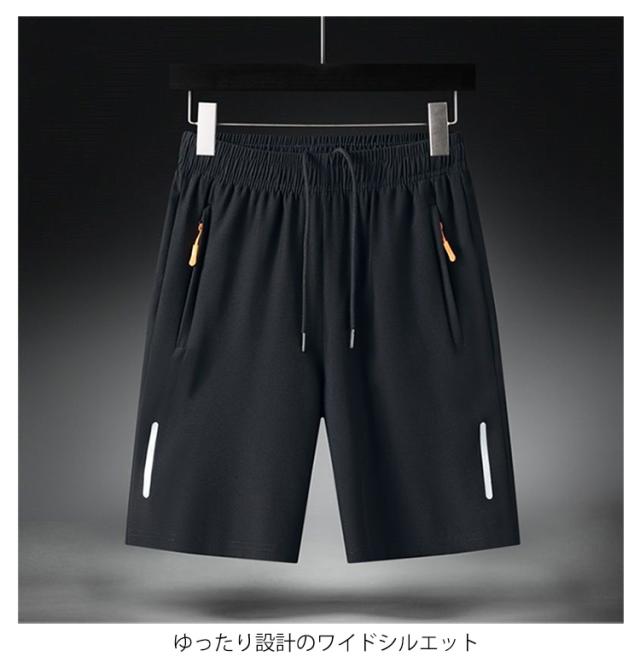 冷感パンツ 通気性 春夏 サマーパンツ ショートパンツ ハーフパンツ 吸汗 メンズ トレーニングパンツ スポーツパンツ ランニングパンツ ビーチパンツ ウエストゴム ゆったり 大きいサイズ ファスナーポケット付き 黒 グレー