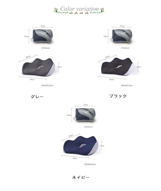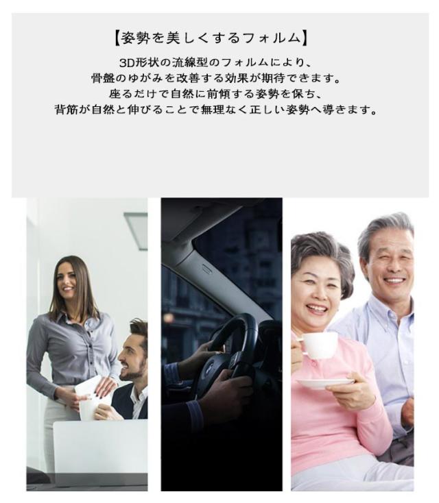 | もう、腰・お尻が痛くならない! 3D健康クッション・低反発 優れた通気性 椅子/床/車用 いつでも自然な身姿に 坐ると腰・背部は自然とまっすぐに、 いつも正しい座り方に ・カバーが洗えて清潔に ・全体をしっかり支える ・お尻が蒸れないように ・大きく包み込む感じ 快適な座り心地を実現する 3Dフィットクッション5つのポイント ・独自の3Dフォルム ・高密度50Dウレタン ・中空構造 ・こだわりのカバー ・滑り止め付き しっかりとした座り心地を実現! 【厳選高密度低反発素材】 高い耐久性・快適反発力 厳選したウレタンフォームを採用数ヵ月でへたってしまう安い素材ではなく、 何年もご使用頂くことを前提に開発しております。 【圧倒的なフィット感を実現】 高密度な高級低反発ウレタンフォームで、あなたのお尻を守ります。 座った際、お尻の両サイドの傾斜に沿ったフォルムが体圧をしっかりと分散させます。 太腿の付け根部分も滑らかに凹ますことでフィット感が高まります。 【姿勢を美しくするフォルム】 3D形状の流線型のフォルムにより、骨盤のゆがみを改善する効果が期待できます。座るだけで自然に前傾する姿勢を保ち、背筋が自然と伸びることで無理なく正しい姿勢へ導きます。 【人間工学デザイン】 お尻と太ももの形状にやさしくフィットします。臀部や太ももへの圧力を吸収・分散させ、長時間座っても疲れにくく、お尻の痛みを気にせず快適な座り心地の健康クッションです。オフィス / 車のシート / 車椅子 / デスク など様々な場所で利用可能。 【‘座る’を科学した中空構造デザイン】 ホール形状の中空デザイン クッションの真ん中部分を中空にすることで、蒸れの予防や痔などのお尻の問題にも役立ちます。 | |
