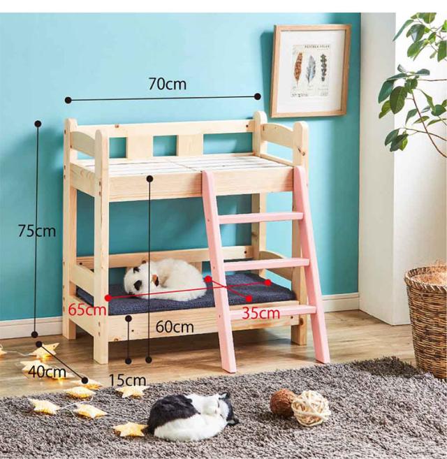 建築資材などに使われる北欧パイン材を使用したカントリー調ペット2段ベッド