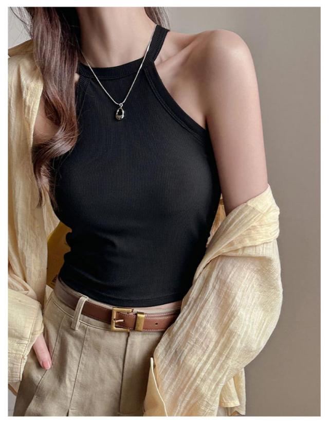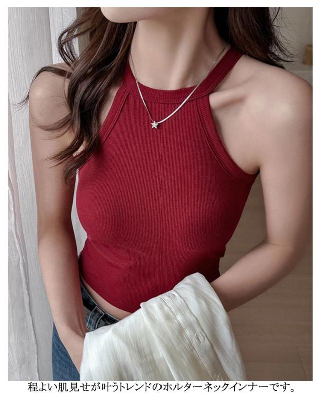 インナー タンクトップ 重ね着 キャミソール トップス カジュアル カップ付き ホルターネックブラ 無地 送料無料 ホルターネック シンプル レイヤード おしゃれ カットソー ブラウン ストレッチ ノースリーブ