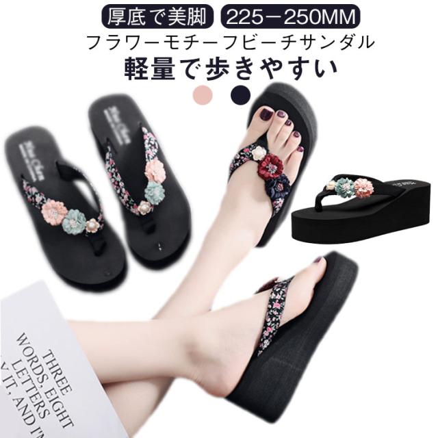 靴 レディース ビーチサンダル 厚底 ミュール ビーチサンダル ミュールサンダル ウエッジサンダル トングサンダル フラワー 厚底サンダル ビーサン 軽量 コンフォート 歩きやすい 美脚サンダル リゾート 旅行 浴衣 シューズ