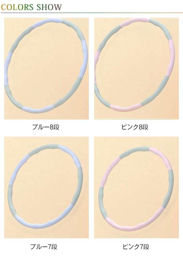 | 【7段・8段 組立式フラフープ】【お家で簡単運動】 いつでもどこでも、お家で簡単運動。 ダイエットに効果的な有酸素運動ができます。 円弧曲線で厚みがあり、体にフィットする有効的なマッサージ設計になっています。 腰や腹部を痛めずに長時間回転が可能です。 迅速な取り付けと、取り外しが簡単な設計になっています。 組み立て式なので、しばらく使用しないときはコンパクトに収納が可能。 | |