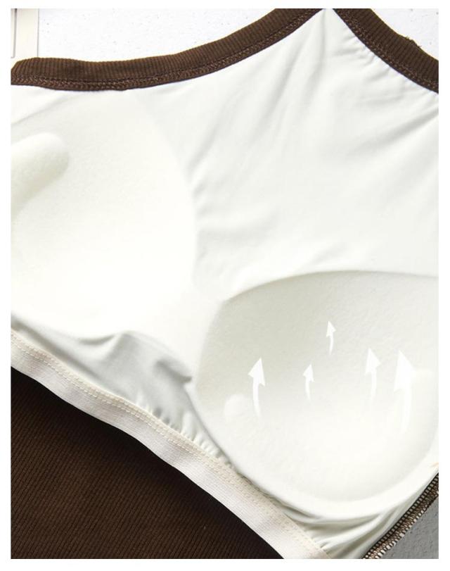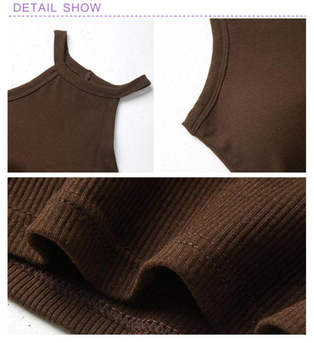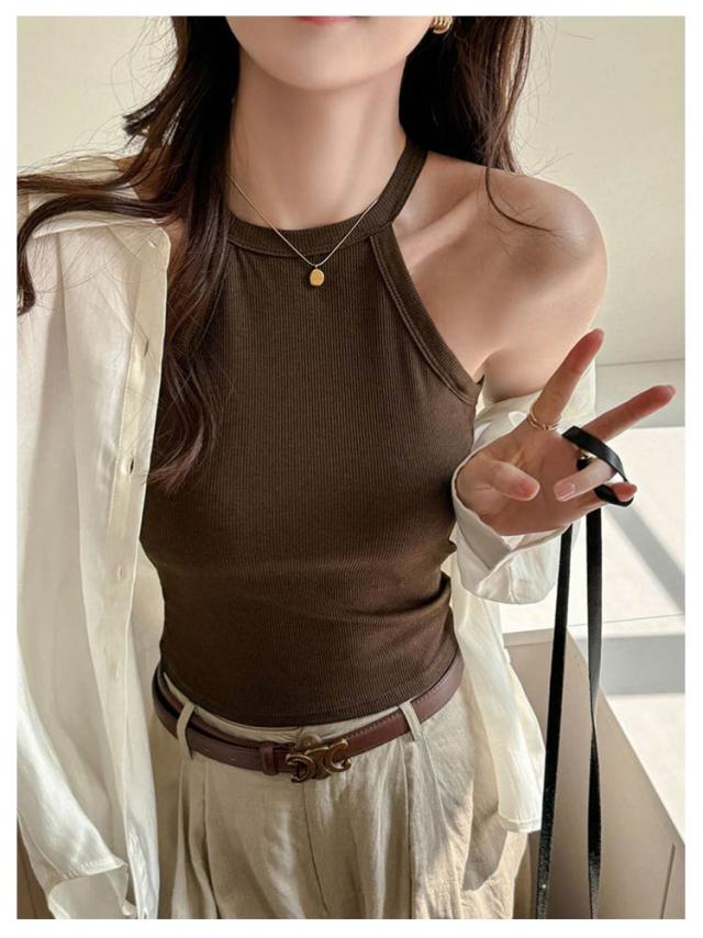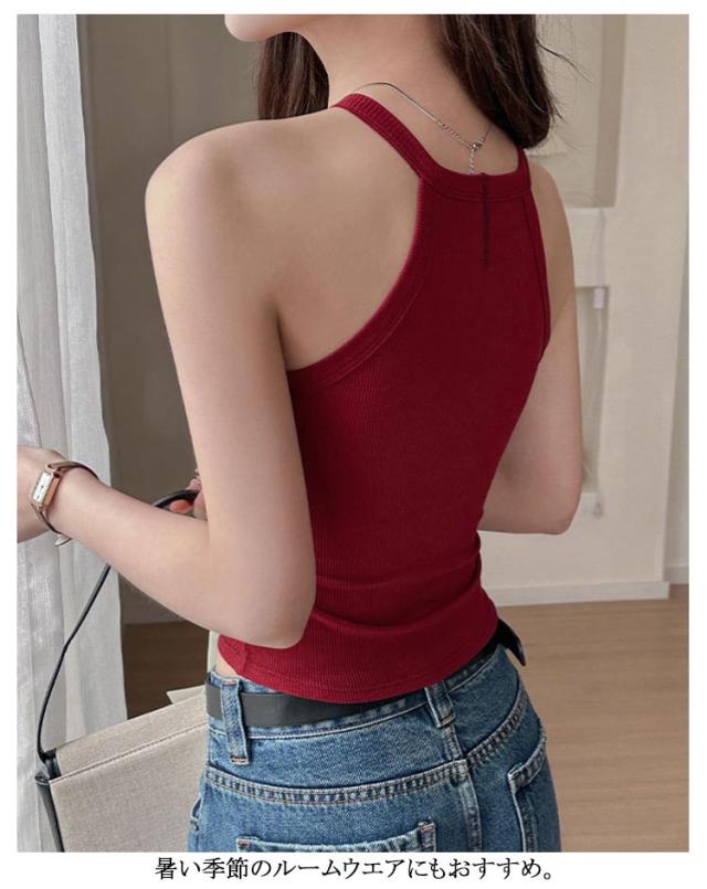 シンプル インナー トップス タンクトップ カップ付き 無地 重ね着 ホルターネックブラ ブラウン キャミソール 送料無料 ホルターネック レイヤード おしゃれ カットソー トップス ストレッチ ノースリーブ