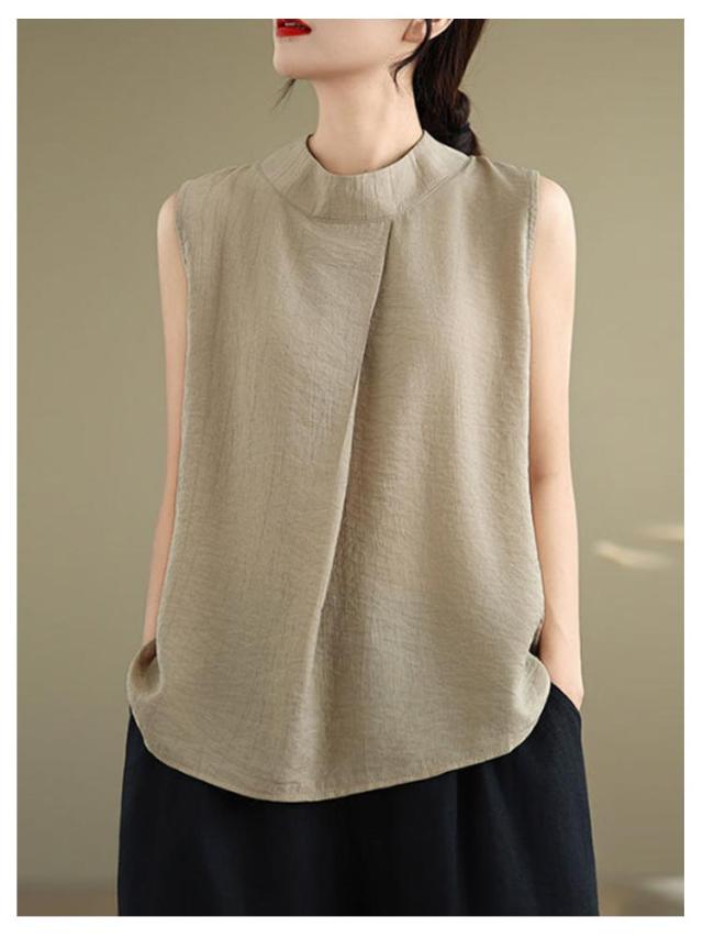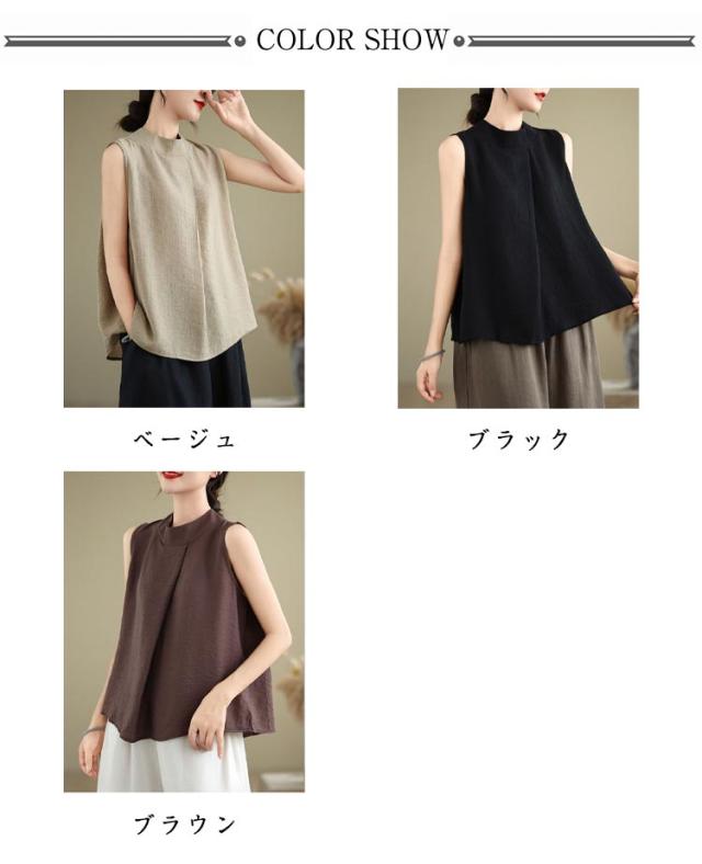 涼しい ブラウス ノースリーブブラウス トップス レディース フリルブラウス シャツ ハイネック 夏ブラウス ギャザーブラウス タンクトップ ノースリーブ ギャザー ゆったり オーバーサイズ ベージュ ブラック