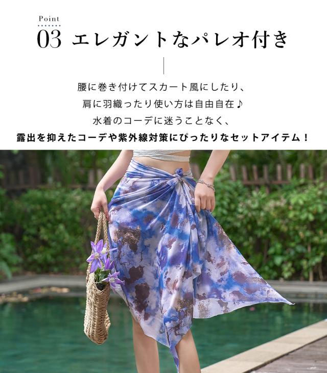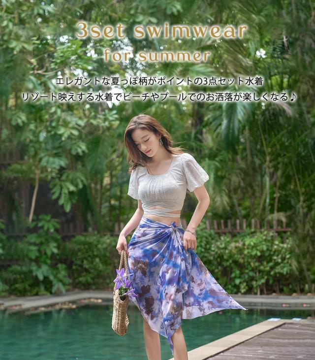 エレガントな夏っぽ柄がポイントの3点セット水着