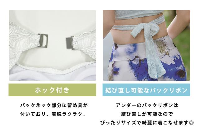 気になるバストをしっかりサポートし、肌見せを抑えたバストラインにしてくれます。