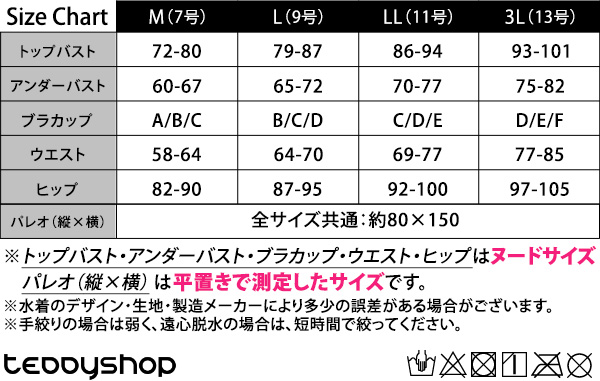 ※トップバスト・アンダーバスト・ブラカップ・ウエスト・ヒップはヌードサイズ、