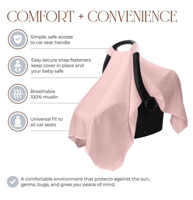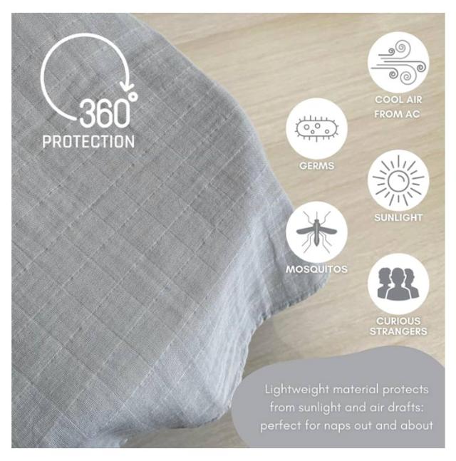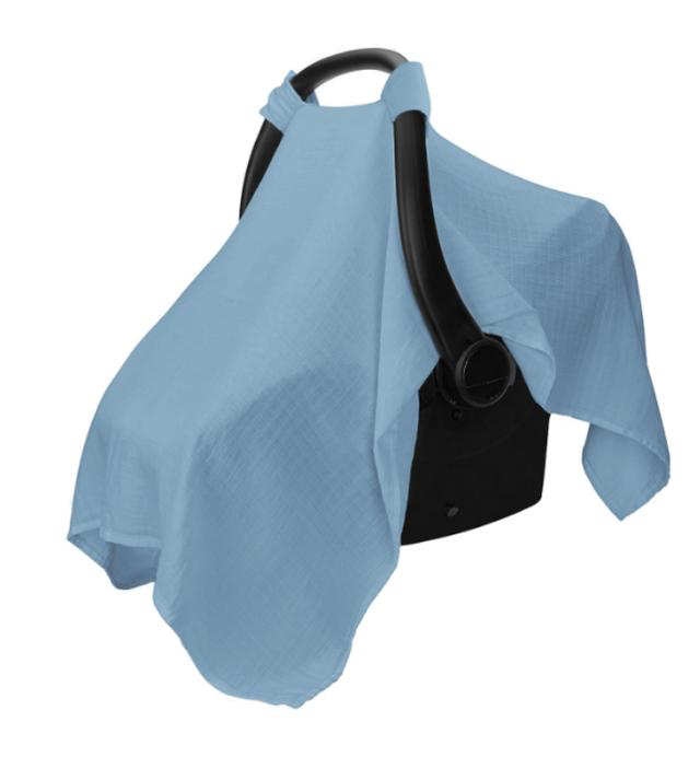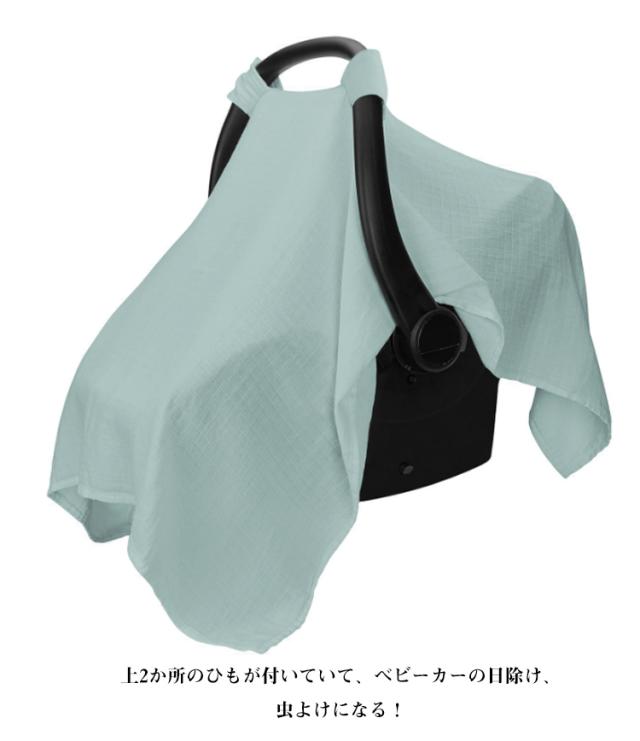 | やわらかいモスリンコットン素材のベビーシートカバー 上2か所のひもが付いていて、ベビーカーの日除け、虫よけになる! 夏は日差しや虫から、冬は寒さから赤ちゃんを優しく守ってくれます。 ブランケットや、ベビーベッドの蚊帳としても。工夫次第で様々な用途に使用可能です。 長く使えるので、プレゼントとしてもおすすめです♪ | |