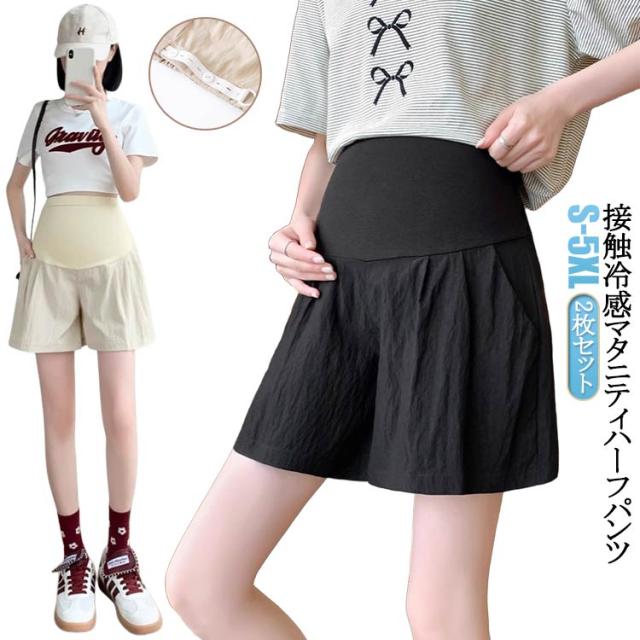 マタニティパンツ 半ズボン 接触冷感 短パン 産前 短パン 産後 2枚セット ハーフパンツ 夏 ショートパンツ ハイウエスト 妊婦服 涼しい 薄手 ルームウェア アジャスター付き 部屋着 臨月 妊婦 妊娠 ショーパン マタニティ