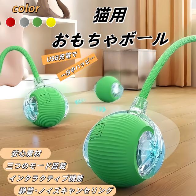 自動360度回転猫ボールおもちゃ|USB充電・Type-C充電対応|長い尾付き電動猫用おもちゃ|運動不足解消&本能刺激