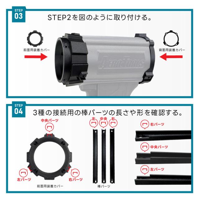 | 商品内容 | ワイドノズル本体、アタッチメント、ネジ、六角レンチ、収納ポーチ ※ブロワー本体は付属しません。 |