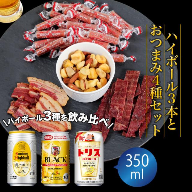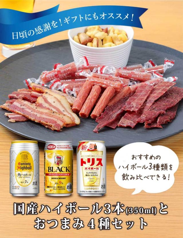 ハイボールギフト サントリー 角ハイボール・サントリー ブラックニッカクリアハイボール・サントリー トリスハイボール 350ml 3本とおつまみ5袋 セット お父さん 内祝い 御中元 お中元 夏ギフト おつまみ セット ギフト