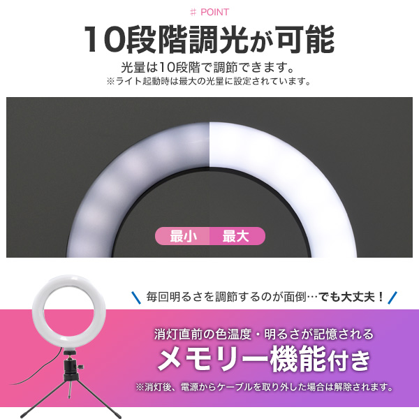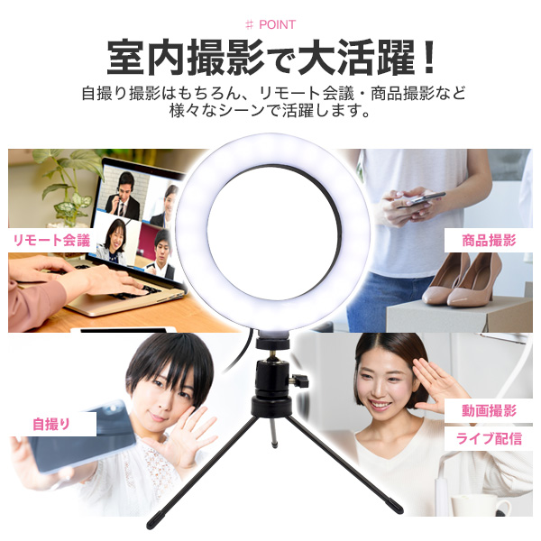 撮影用 LEDリングライト ミニ三脚タイプ 配信用 ライト 10段階調光 明るい 室内撮影用照明 角度調節 ライト 照明 USB電源 商品撮影 オークション商品の撮影 出品写真 綺麗に撮れる 自撮り ライブ配信 動画撮影 電球色 白色 昼白色 送料無料