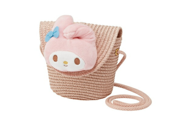【サンリオキャラクターズ】ストロー素材フラップ型ショルダーバッグ【マイメロディ】【かばん】【カバン】【収納】【斜め掛け】【レディース】【女性】【子供】【キッズ】【お出かけ】【
