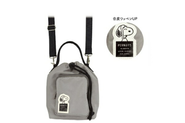 【スヌーピー】【SNOOPY】2way巾着ショルダーバッグ【ライトグレー】【Pop up Snoopy】【ピーナッツ】【ウッドストック】【アニメ】【キャラクター】【かばん】【