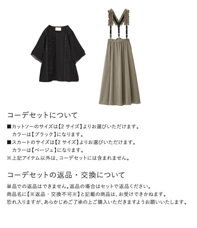 23日最大1200円クーポン 【送料無料】『フレア袖レースデザインカットソー×フリルサスペンダー付きフレアスカートコーデ2点SET』【メール便不可】【30】[2点コーデセット 2025 レディース カットソー トップス Tシャツ スカート ボトムス]