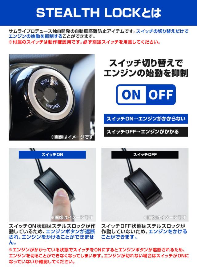 『STEALTH LOCK』はサムライプロデュース独自開発の自動車盗難防止アイテムです。