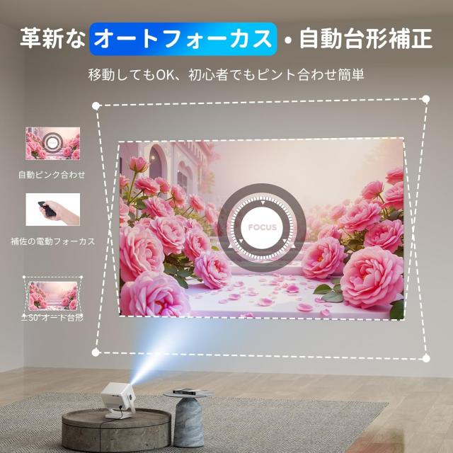 初心者や子供でも楽に設置可能なオートフォーカス機能を搭載、面倒な手動ピンとを捨て、自動的に焦点合わせを始める、移動してもOK、操作に煩わすことなくスマートなホームシアター生活を満喫。