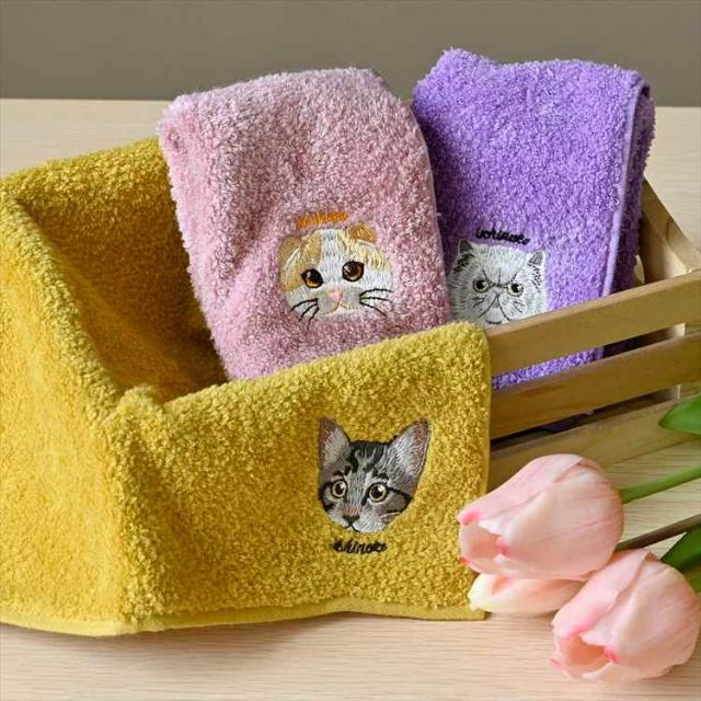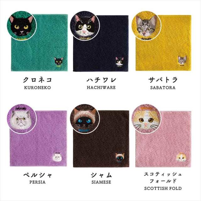 ハンカチタオル 猫 ネコ 刺繍 今治タオル うちのニャンコ レディース ハンカチ ミニタオル 25cm 大人 かわいい おしゃれ 女性 猫好き 猫グッズ プレゼント ギフト オーガニックコットン 日本製 綿100% 黒猫 ハチワレ サバトラ ペルシャ シャム スコティッシュフォールド