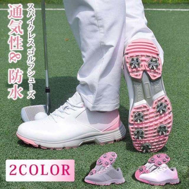 スパイクレス ゴルフシューズ レディース シューズ スニーカー 靴 通気性 おしゃれ 防水 幅広 ゴルフシューズ