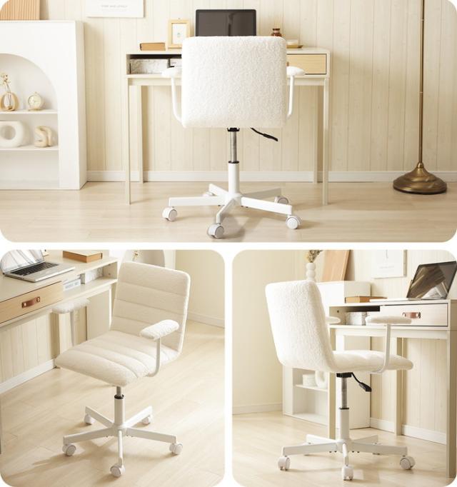 もこもことした張地がかわいらしいアームレスト付きのオフィスチェアです。清潔感のある白基調のデザインでお部屋に置きやすく、見た目だけでなく機能にもこだわりました。