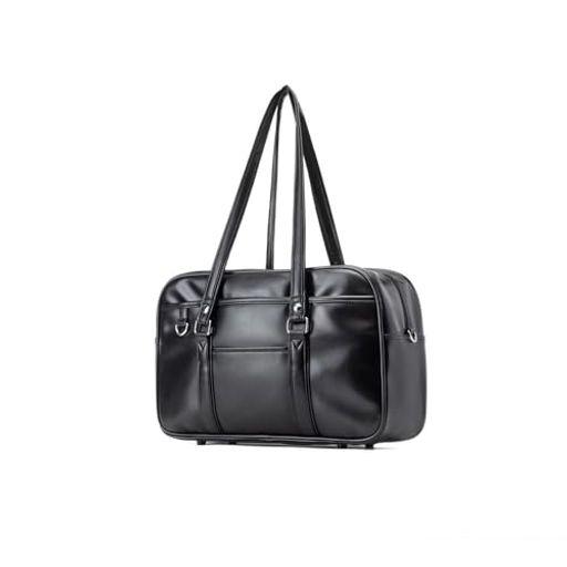 [JINGHUIYUE] スクールバッグ 高校生 女子 通学 ボストンバッグ 合皮 大容量 軽量 男女兼用 肩紐長いブラック