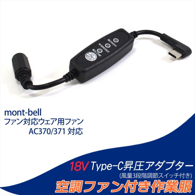 mont-bell モンベル ファン対応ウェア用 AC370 371 ファン 対応 変換ケーブル 空調ウェア 19V AC370/371 対応 スイッチ付き モバイルバッテリー Type-C昇圧 アダプター 18V L型 Type-C PD対応 変換 昇圧ケーブル USB-C タイプC ベスト ショートスリーブパ ーカ 【18V-C】