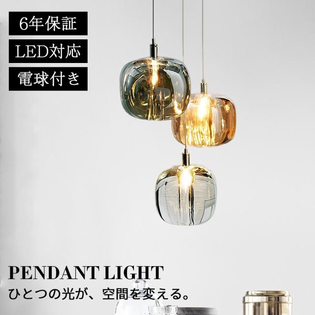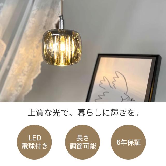 ペンダントライト ダイニング おしゃれ ガラス 北欧 吊下げ灯 LED電球付き 吊り下げ LED 天井照明 吊り下げライト 和室 1灯 明るい 引っ掛けシーリング 照明器具 コード調整 人気 キッチン 電球色 取付簡単 リビング カフェ インテリア 食卓 レトロ 雰囲気ライト【6年保証】